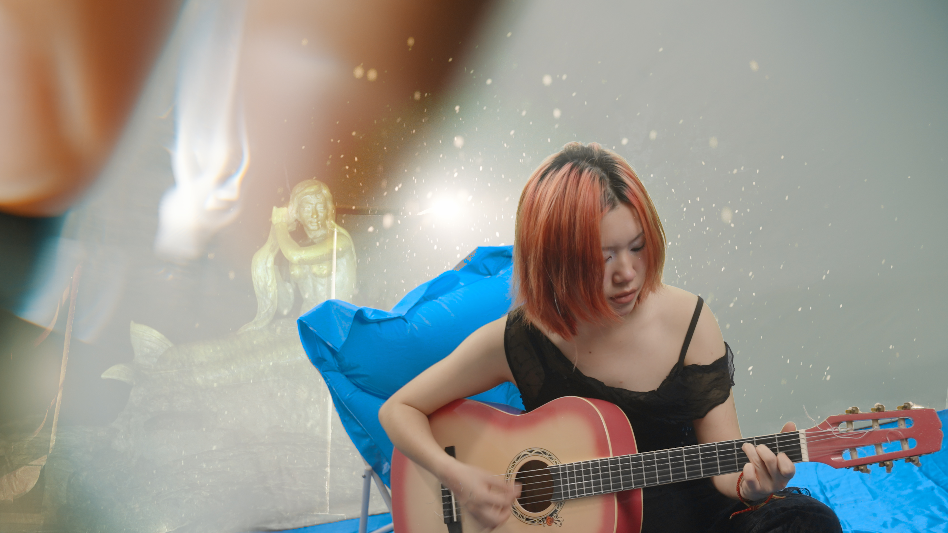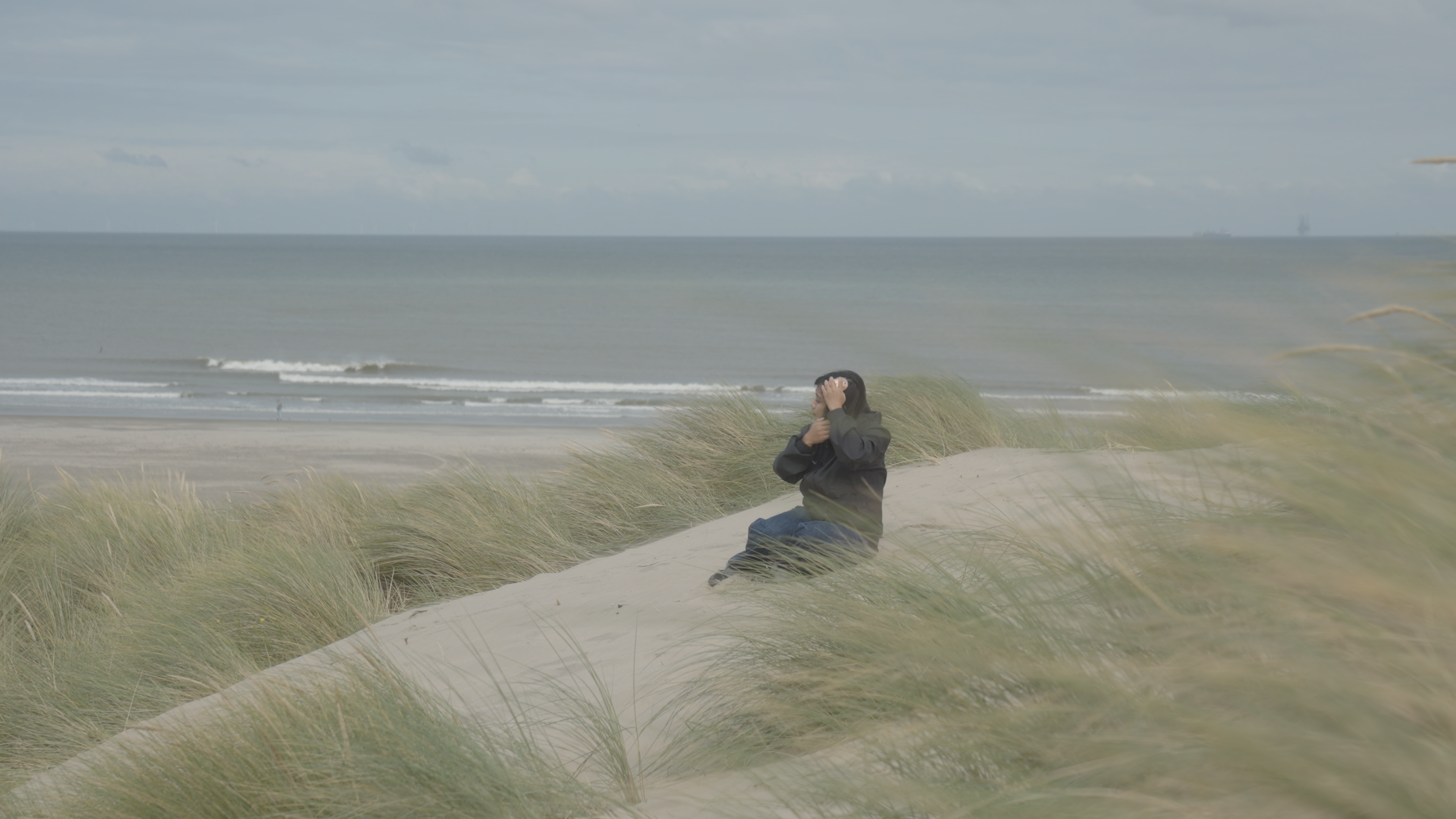 She Cries (The Holy Water) explores homesickness and folklore from a female perspective. It follows the fragmented self-reflections of a Thai artist living in the Netherlands, intertwining migration, childhood memories, and speculative folklore about a mermaid at Samila Beach with the Dutch seaside landscape and its shifting weather.